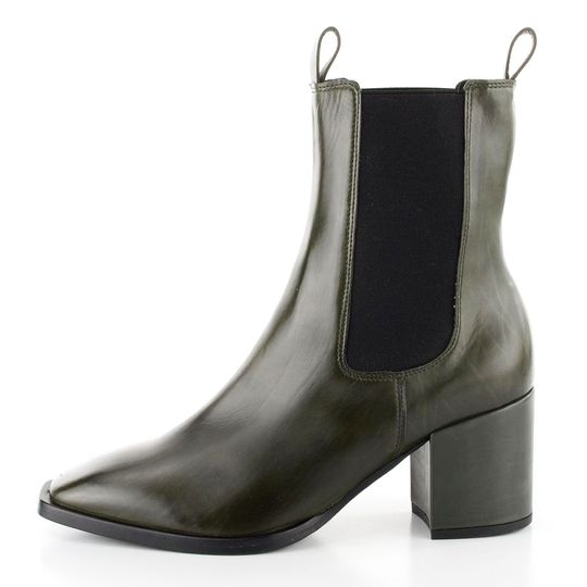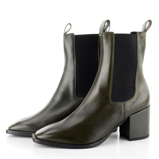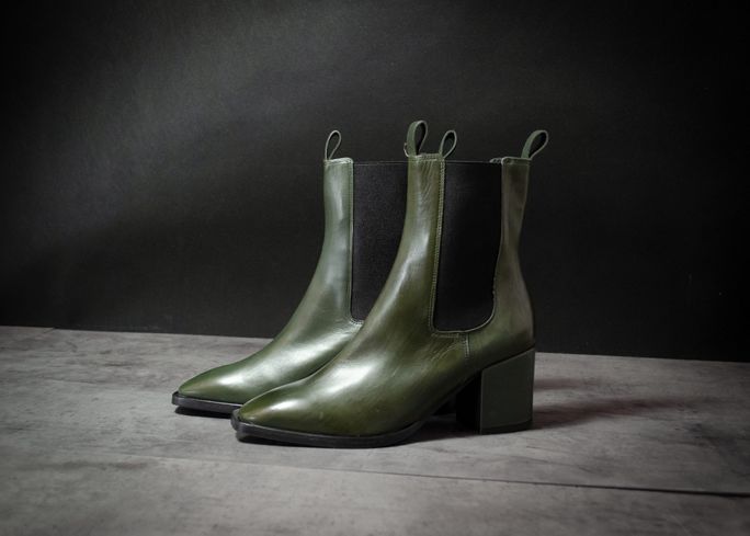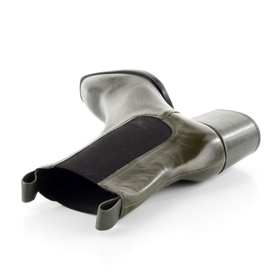 Dámský, vyšší tmavě zelený kotník s postranními pružinkami a celokoženou podšívkou.