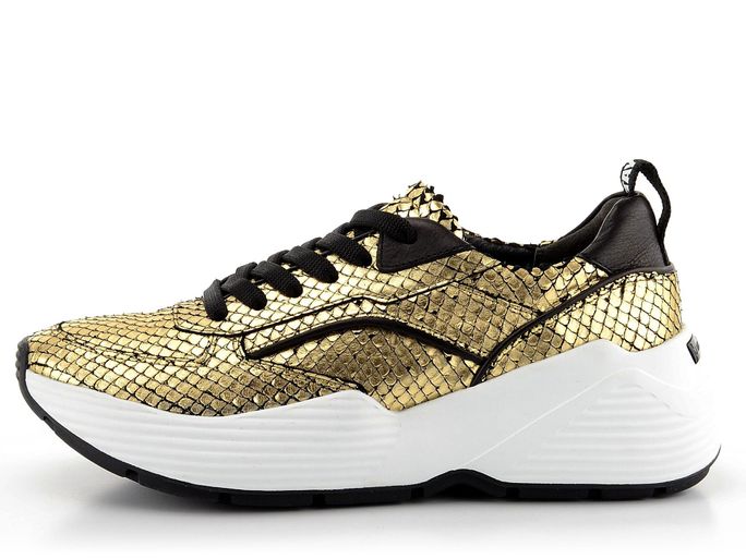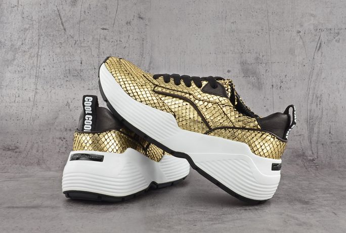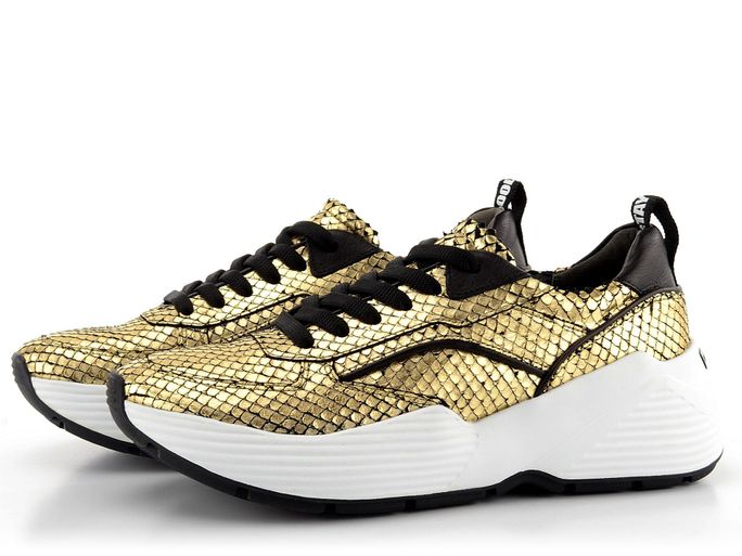 Dámské sneakers polobotky s luxusní zlatou hadinkou a vysokou módní platformou.