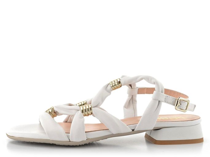 Jednoduché elegantní pásečkové sandálky v bílé barvě s potaženým podpatkem.