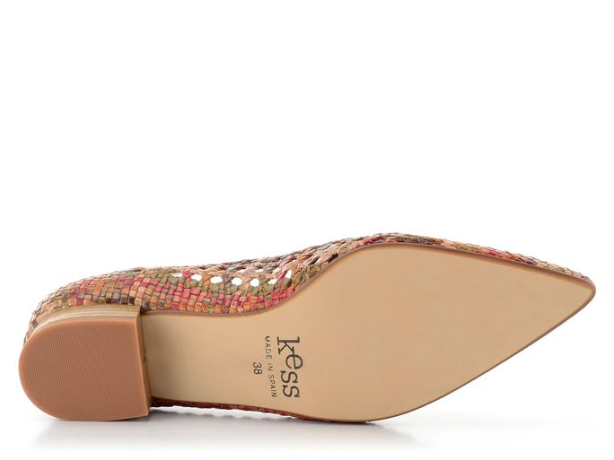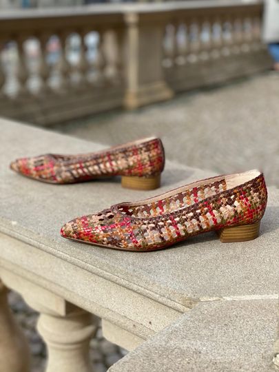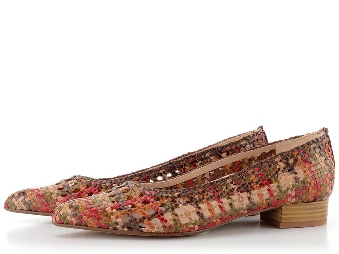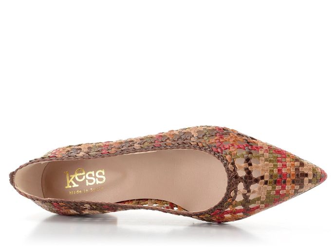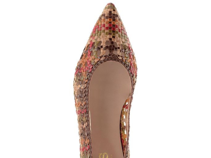 Dámské luxusní lodičky ze splétané kůže v krásně sladěné kombinaci přírodních tónů.