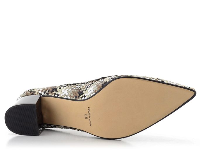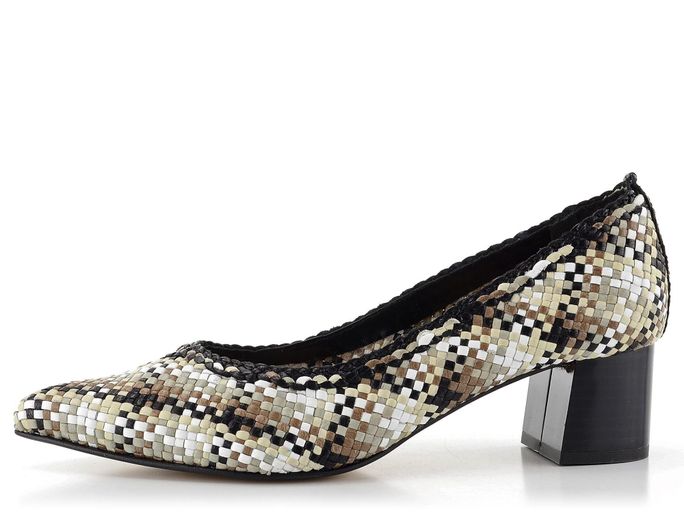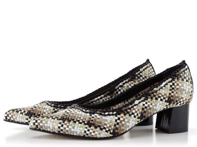 Dámské luxusní lodičky ze splétané kůže v krásně sladěné kombinaci barev.