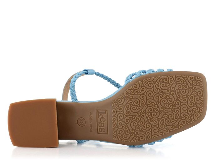 Jednoduché elegantní pásečkové sandálky ze splétané kůže a v nevšední, nebesky modré barvě.