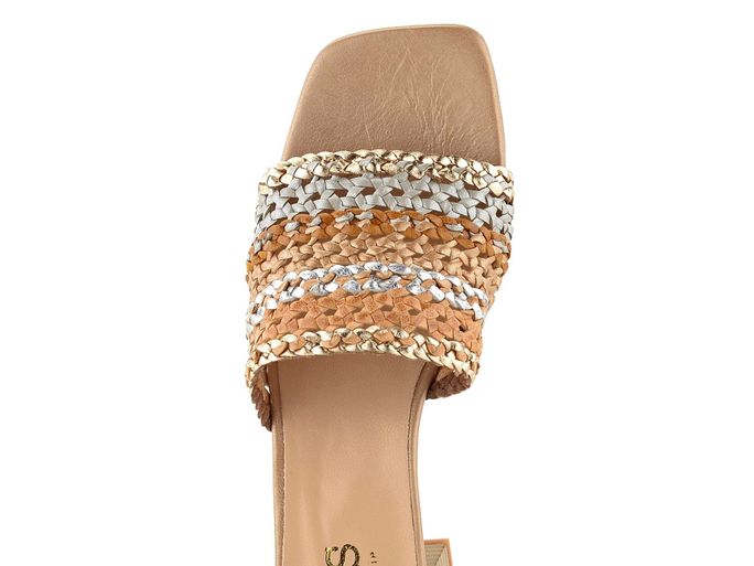 Luxusní dámské pantofle ze splétané kůže v pěkně sladěných odstínech.