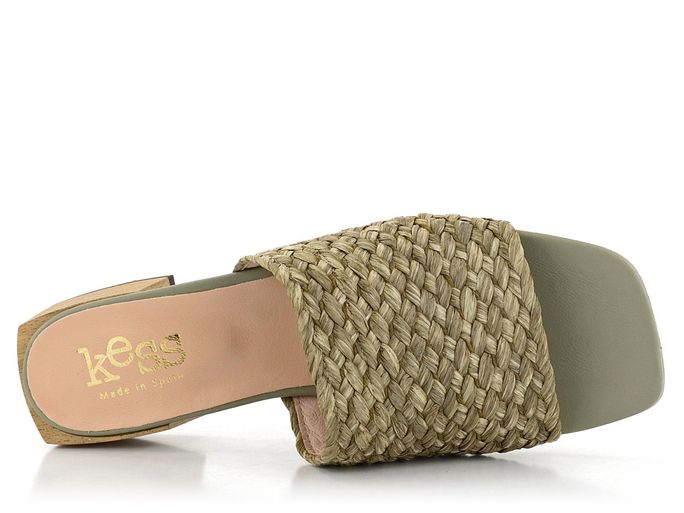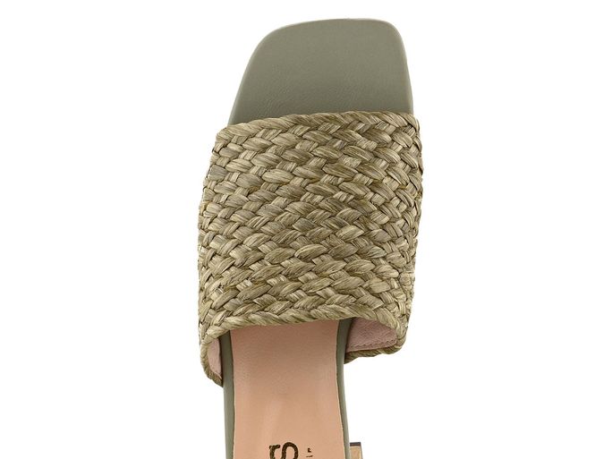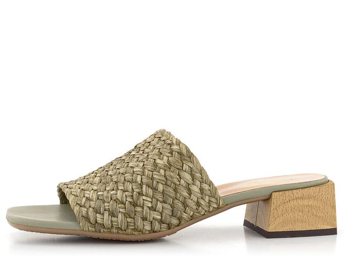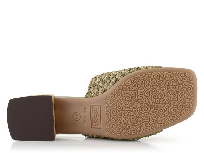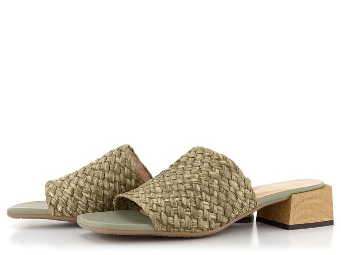 Luxusní dámské pantofle ze splétaného lýka s originálně tvarovaným podpatkem.