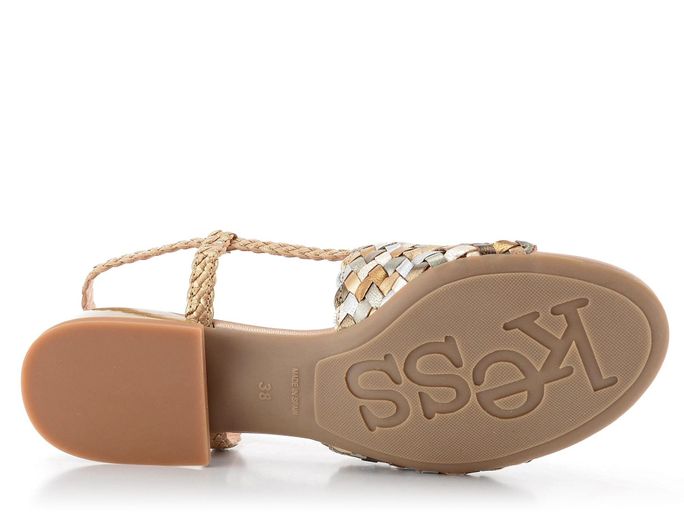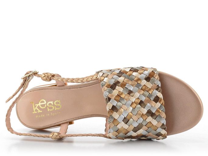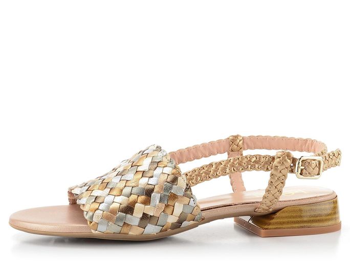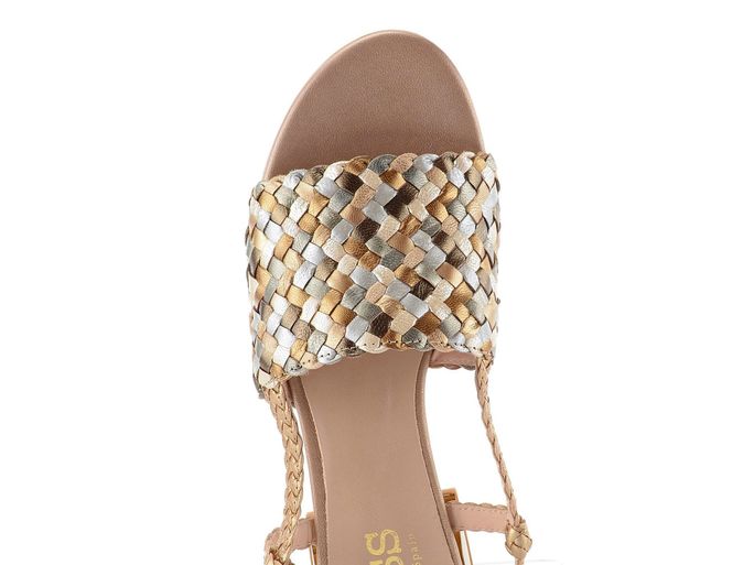 Jednoduché elegantní pásečkové sandálky ze splétané kůže v metalických odstínech.