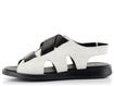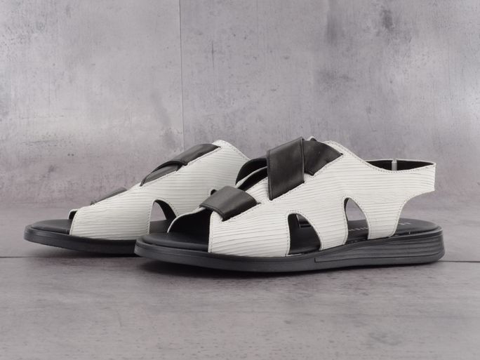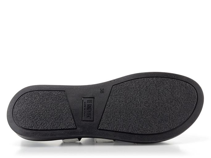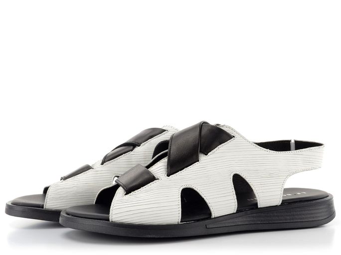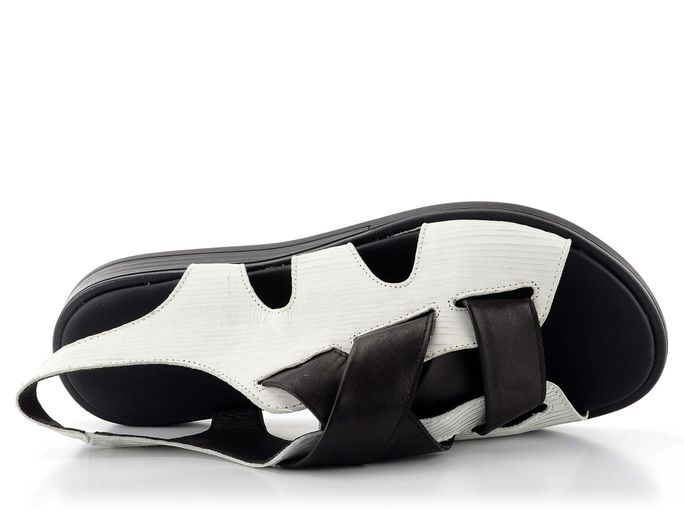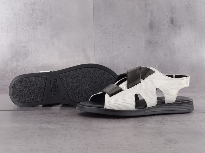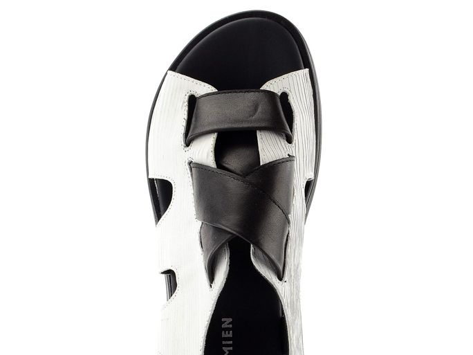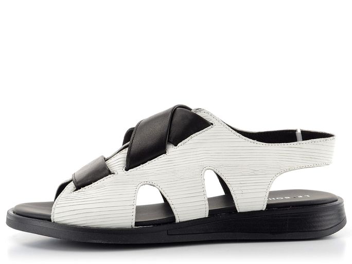 Výjimečné dámské sandály v odražené bílé barvě s dominantními kříženými pásky na nártu.