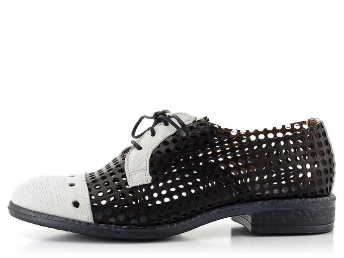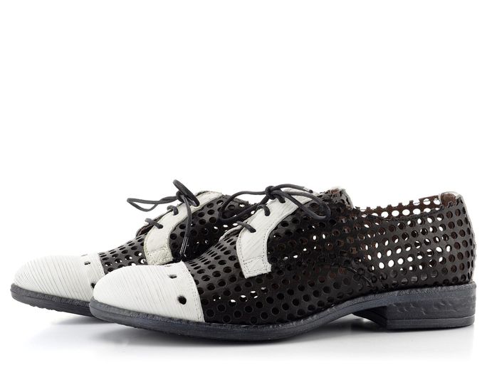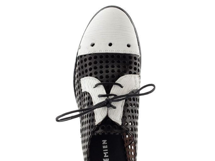 Výjimečné dámské polobotky v bílo-černé kombinaci a s originálním celoplošným děrováním.