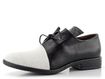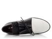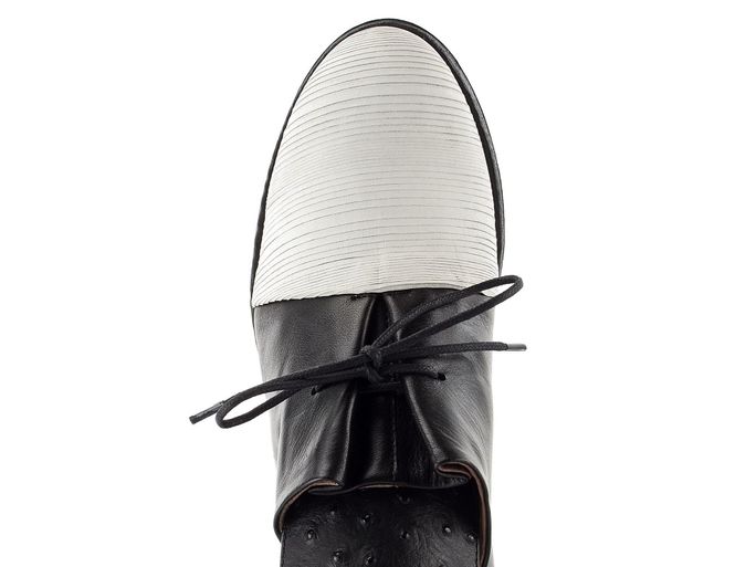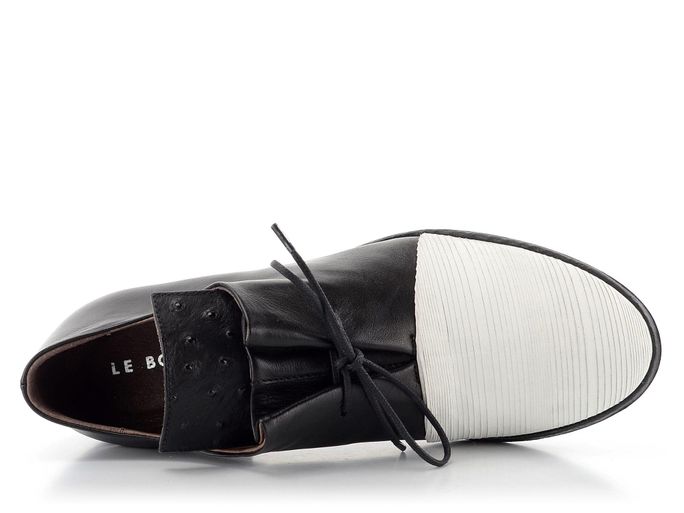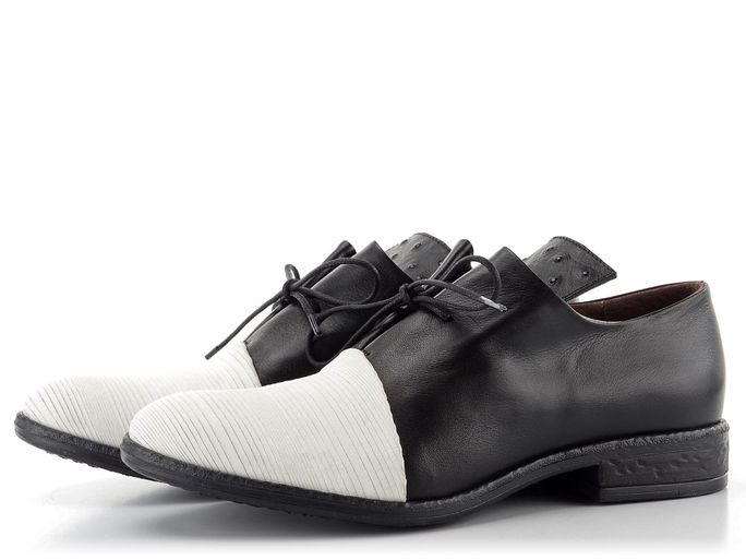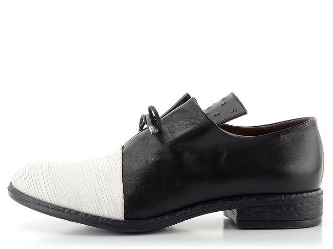 Výjimečné dámské polobotky v bílo-černé kombinaci a se zajímavě řešeným jazykem.