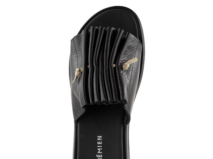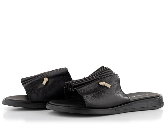 Luxusní dámské kožené pantofle s řasením na nártu.
