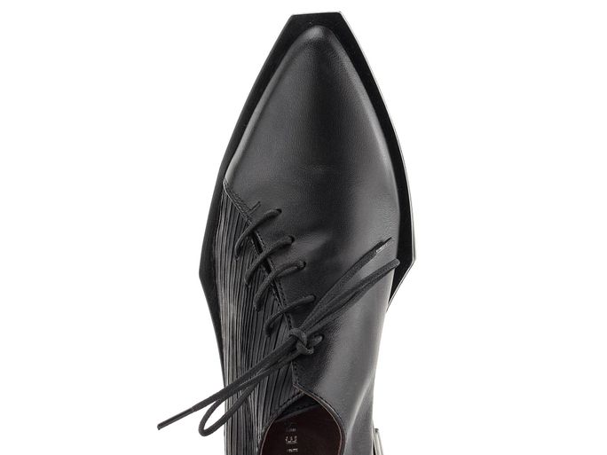 Výjimečné dámské polobotky ve špičatějším střihu a s originálním šikmým šněrováním.