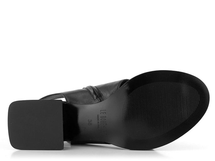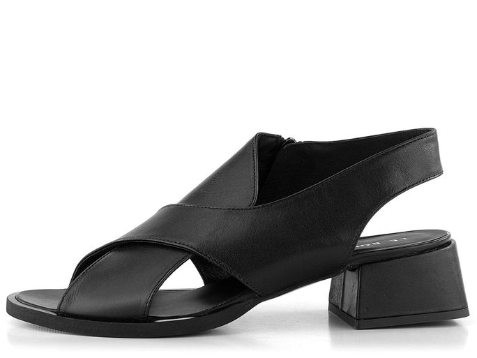 Luxusní kožené sandály na podpatku, se širokými kříženými pásky a vnitřním zipem.
