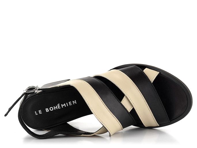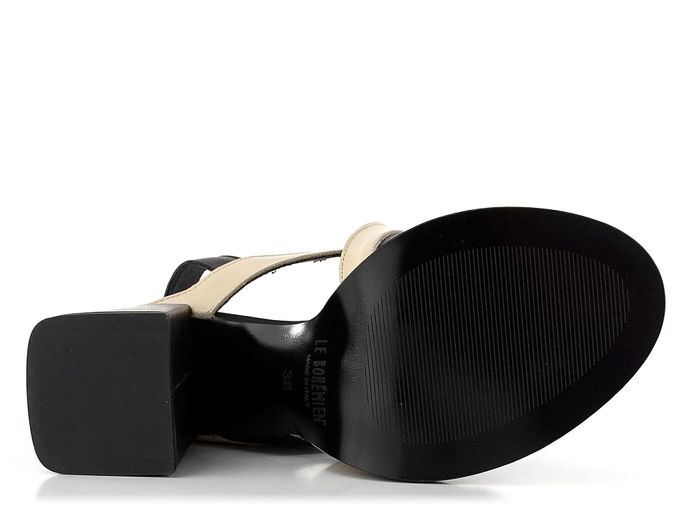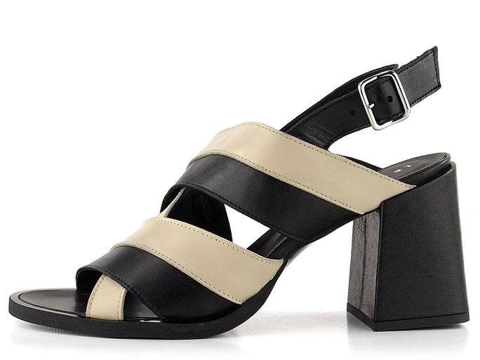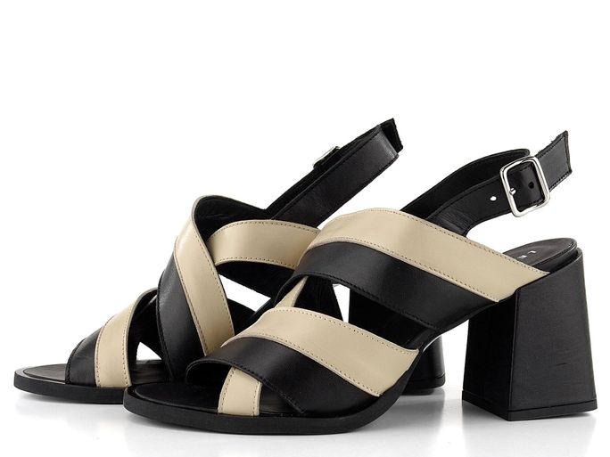 Výjimečné dámské kožené sandály v černo-béžové kombinaci a na vysokém, stabilním podpatku.