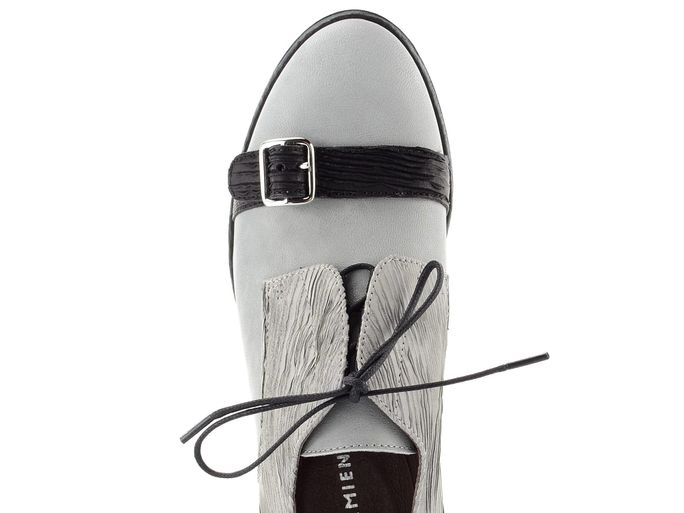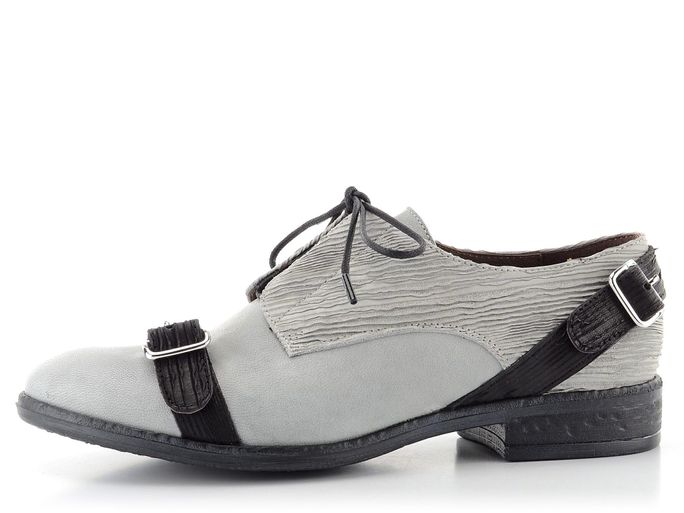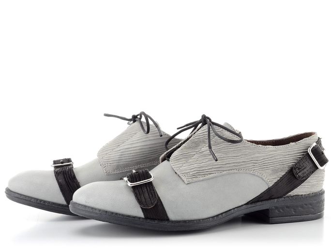 Extravagantní dámské polobotky v šedé barvě s designovými pásečky.