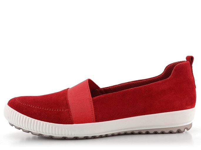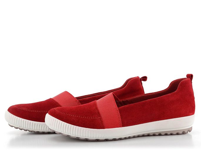 Hledáte pohodlné a stylové baleríny na jaro a léto? Dámské baleríny sportovnějšího střihu od rakouské značky Legero jsou ideální volbou. Vyrobeny ze semišové kůže v krásné rubínově červené barvě, tyto baleríny se skvěle přizpůsobí noze díky šikmo vsazené pružné gumičce. Podšívka z perforované textilie s mírným polstrováním zajišťuje cirkulaci vzduchu a komfort při nošení. Tvarovaná vyjímatelná stélka potažená broušenou kůží a vyvýšená pata poskytují extra pohodlí a snadné obouvání. Flexibilní sportovnější podešev a lepený výrobní způsob zaručují dlouhou životnost. S výškou podpatku 3,2 cm jsou tyto baleríny perfektní volbou pro každodenní nošení.