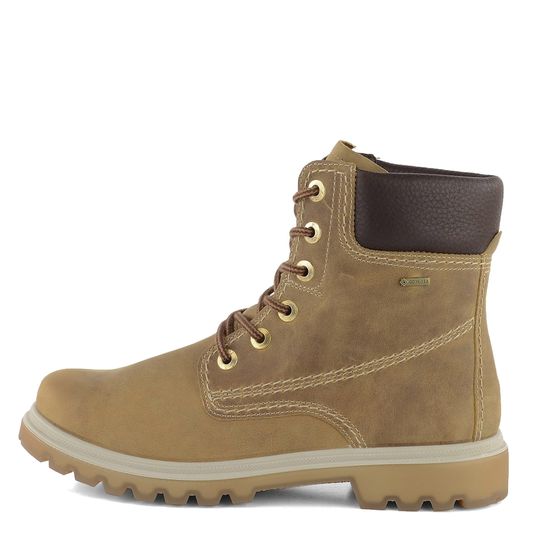 Pro dámy, které hledají pohodlí a funkčnost, je tu kotníková obuv od značky Legero. Tento model nabízí prostorný a bytelný pohorkový střih, který je ideální pro podzimní a zimní sezónu. Svrchní materiál je vyroben z pevné maštěné kůže v pískově hnědém odstínu, doplněný o polstrovanou bandáž z hladké kůže v tmavě hnědé barvě. Uvnitř naleznete teplou podšívku z umělého beránku, která udrží vaše nohy v teple i v chladných dnech.