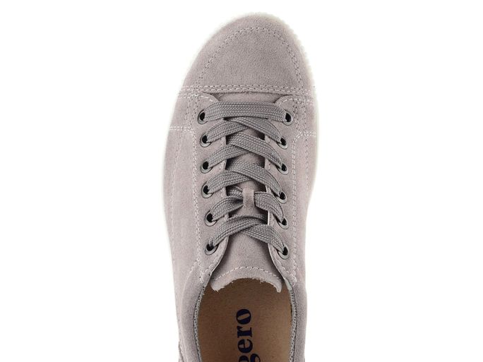 Dámské polobotky ze světle šedé semišové kůže s koženou vyjímatelnou stélkou.