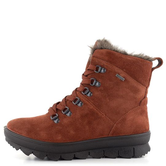 Dámské kotníkové boty od značky Legero přinášejí ideální kombinaci stylu a funkčnosti pro podzimní a zimní sezónu. Vyrobeny ze semišové kůže v hnědočerveném odstínu, tyto boty nejen skvěle vypadají, ale také poskytují maximální komfort. Melírovaná kožešinka v kotníkové části a na lemu obuvi dodává elegantní vzhled, zatímco teplá podšívka z umělého beránku zajišťuje, že vaše nohy zůstanou v teple. Díky vodonepropustné membráně Gore-Tex® jsou boty odolné proti vlhkosti a působí jako tepelný izolant. Vyšší hrubá, ale flexibilní podešev s protismykovým vzorkem zaručuje bezpečnou chůzi i na kluzkém povrchu. Výška podpatku je 4 cm, což poskytuje optimální podporu a pohodlí. Se šněrováním pro snadné obutí a vyjímatelnou stélkou potaženou beránkem jsou tyto boty ideální volbou pro každodenní nošení ve městě i na lehké procházky venku.