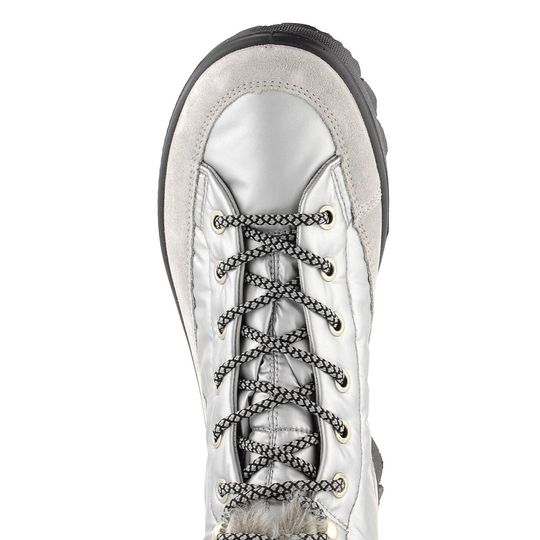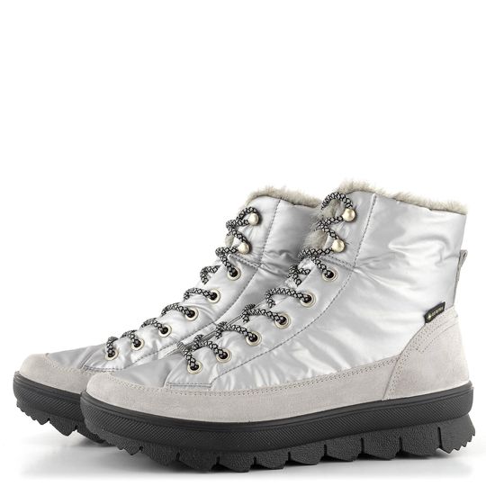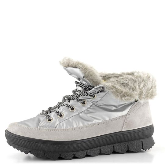 Objevte dokonalé spojení stylu a funkčnosti s dámskými vycházkovými kotníkovými botami od značky Legero. Tyto boty jsou ideální volbou pro podzimní a zimní sezónu díky své světle šedé semišové kůži doplněné o stříbrnou metalickou textilii. Melírovaná kožešinka v oblasti kotníku a na lemu dodává botám jedinečný vzhled a zároveň zajišťuje teplo. Boty jsou vybaveny vodonepropustnou membránou Gore-Tex®, která působí jako tepelný izolant a zvyšuje užitné hodnoty obuvi. Vyjímatelná stélka potažená beránkem a teplá podšívka z umělého beránku zajistí maximální komfort. S výškou podpatku 4 cm a flexibilní protismykovou podešví budete mít jistotu bezpečného kroku. Ideální volba pro ženy hledající pohodlí a styl v jednom.