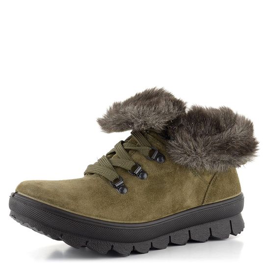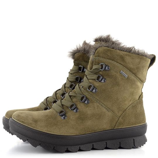 Dámské vyteplené kotníkové boty značky Legero jsou ideální volbou pro podzimní a zimní sezónu. Vyrobené z kvalitní semišové kůže v elegantní olivově zelené barvě, tyto boty nabízejí nejen styl, ale i funkčnost. Vnitřní zateplení a kožešinka v kotníkové části a na lemu obuvi zajišťují maximální pohodlí a teplo. Boty jsou vybaveny vodonepropustnou membránou Gore-Tex®, která působí jako tepelný izolant a chrání před vlhkostí, což prodlužuje životnost obuvi a udržuje ji bez skvrn od soli.