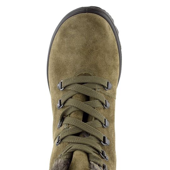 Sportovnější střih a šněrování dodávají botám moderní vzhled, zatímco vyjímatelná stélka potažená beránkem přispívá k jejich komfortu. Výška kotníku je 13 cm (měřeno bez podpatku) a vyšší hrubá podešev s protismykovým vzorkem zajišťuje stabilitu i na kluzkém povrchu. Tyto boty jsou skvělou volbou pro každodenní nošení ve městě i na lehké procházky venku.