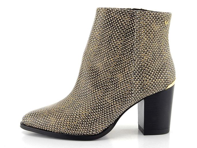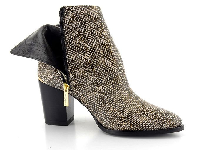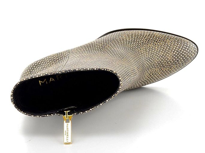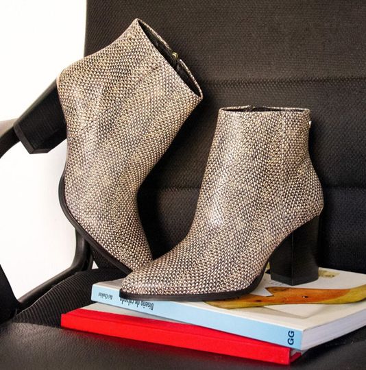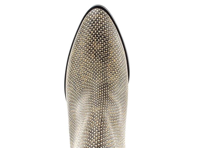 Dámský celokožený kotník s ladnou špičkou a krásně dezénovaným vzorem.