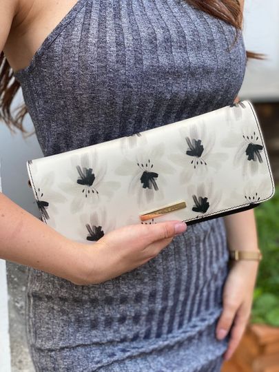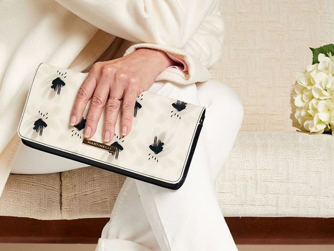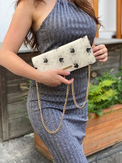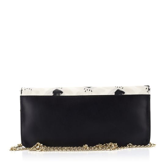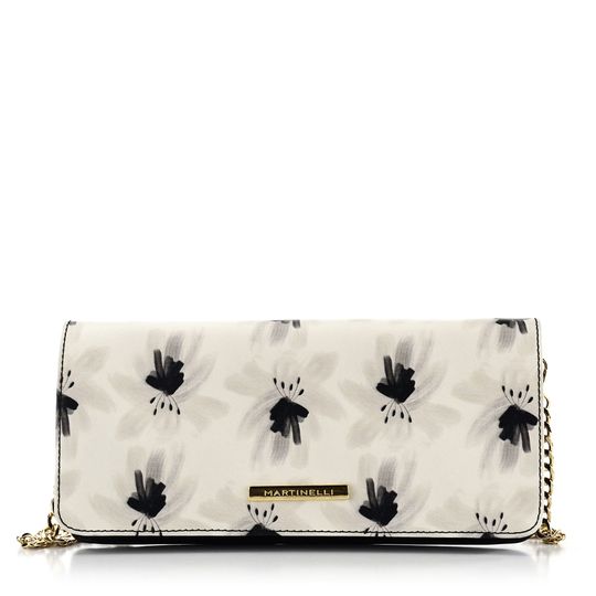 Luxusní dámské kožené psaníčko s potiskem květin a řetízkem přes rameno.