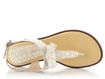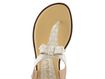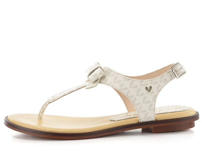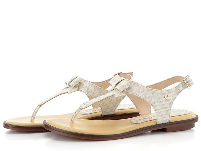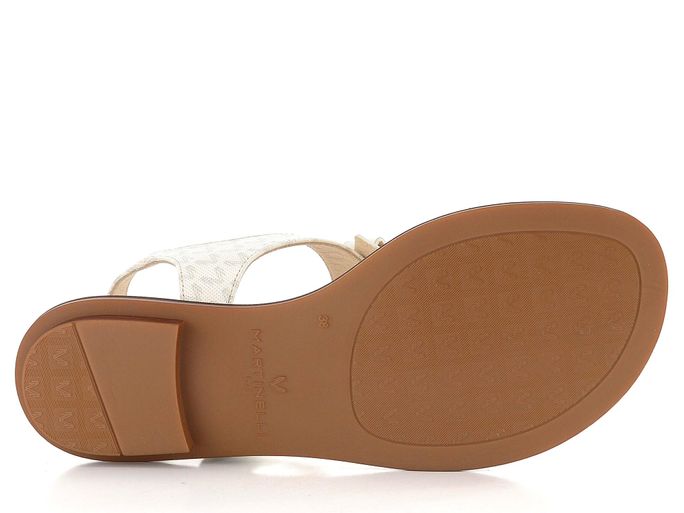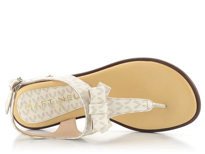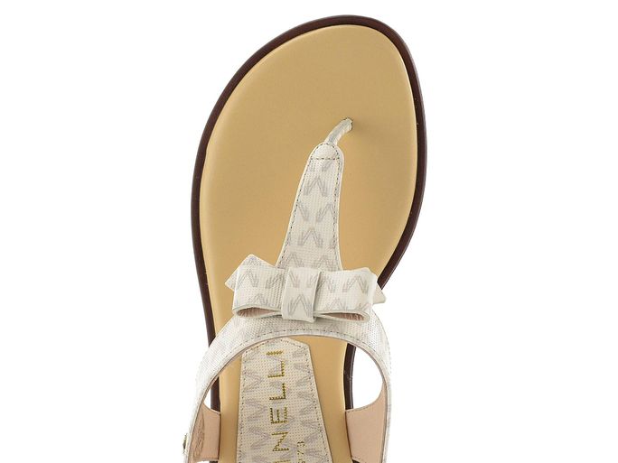 Dámské sandály z jemně strukturované kůže s potiskem a s páskem mezi prsty.