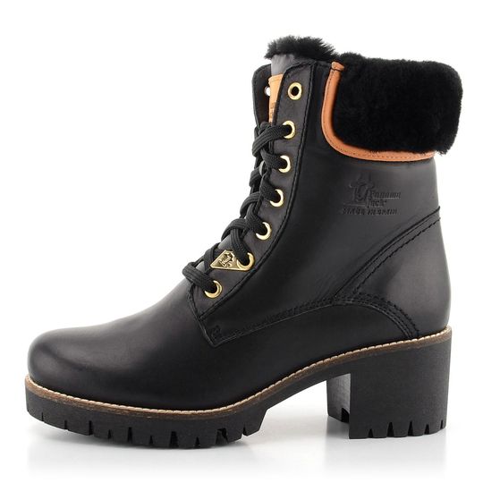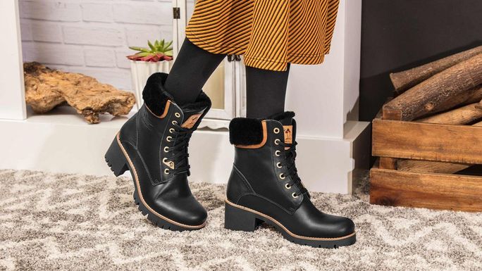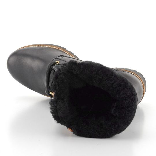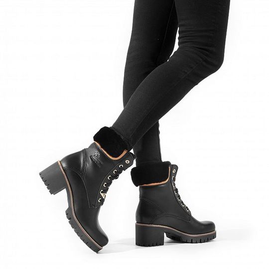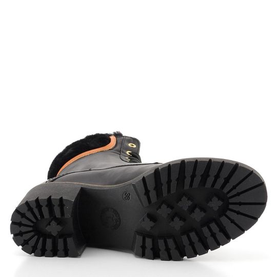 Dámský vyteplený kotník s kožešinkou a na hrubé podešvi se širokým podpatkem.