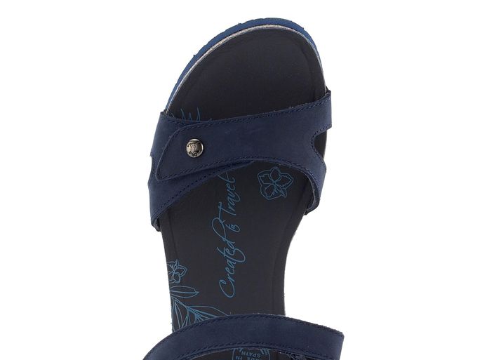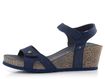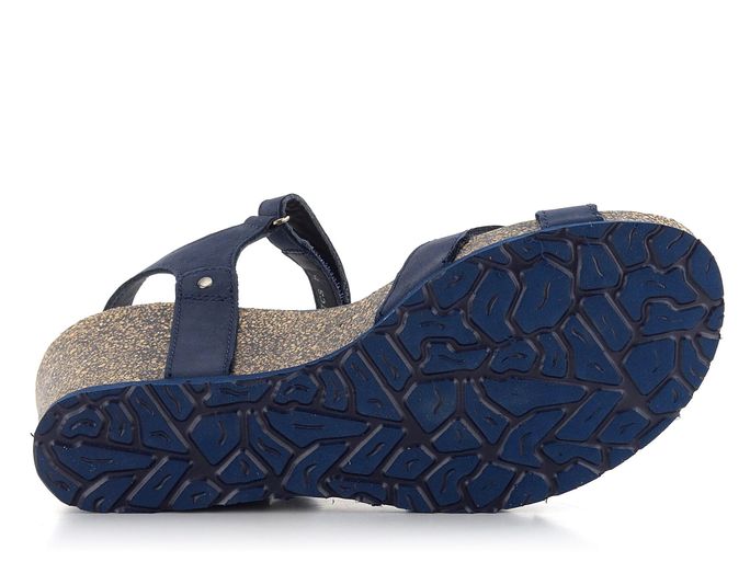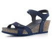 Dámské kožené sandály na klínku v tmavě modré barvě s pásky na suché zipy.