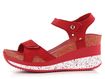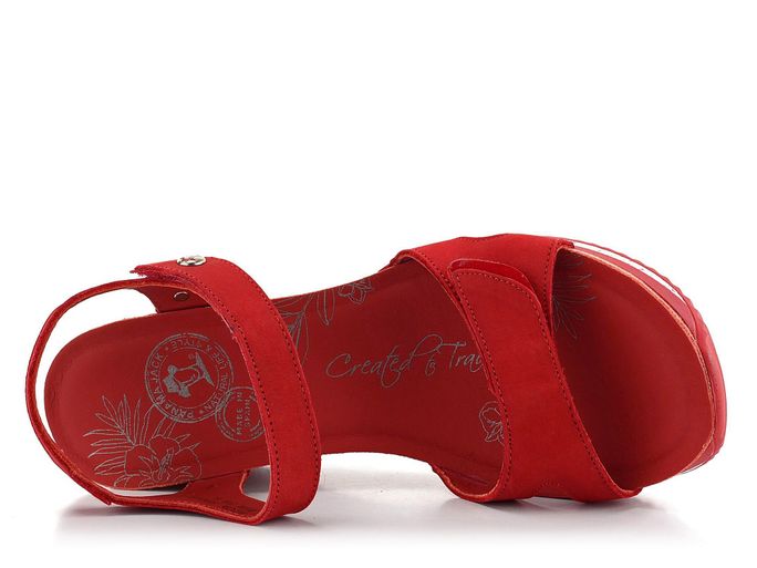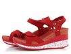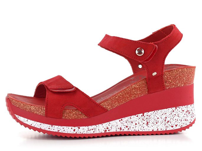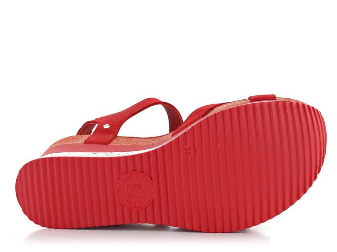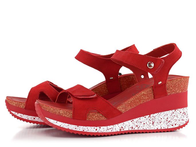 Dámské letní sandály z nubukové kůže v červené barvě a na vysoké sportovnější platformě s klínem.