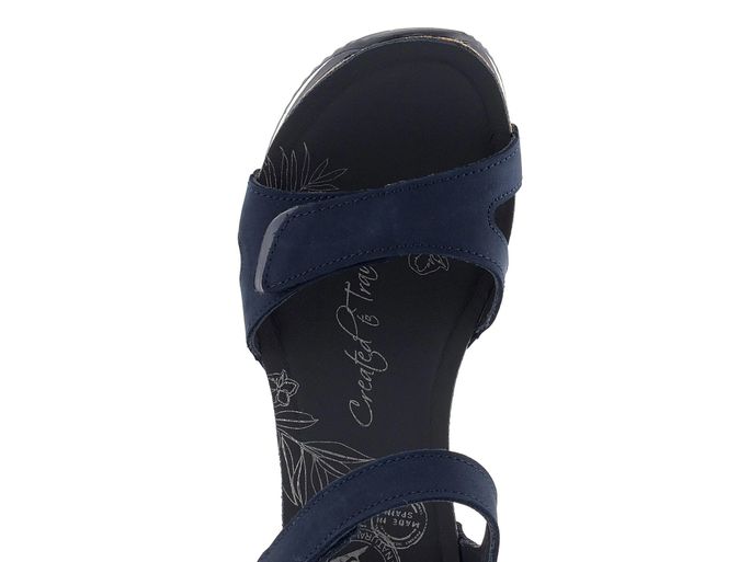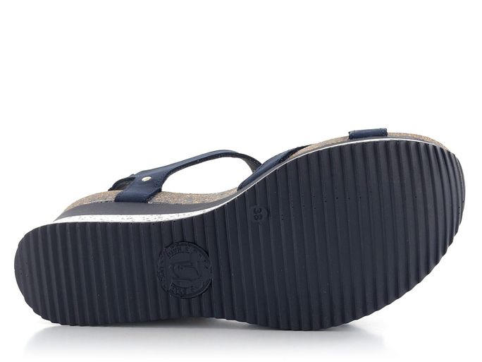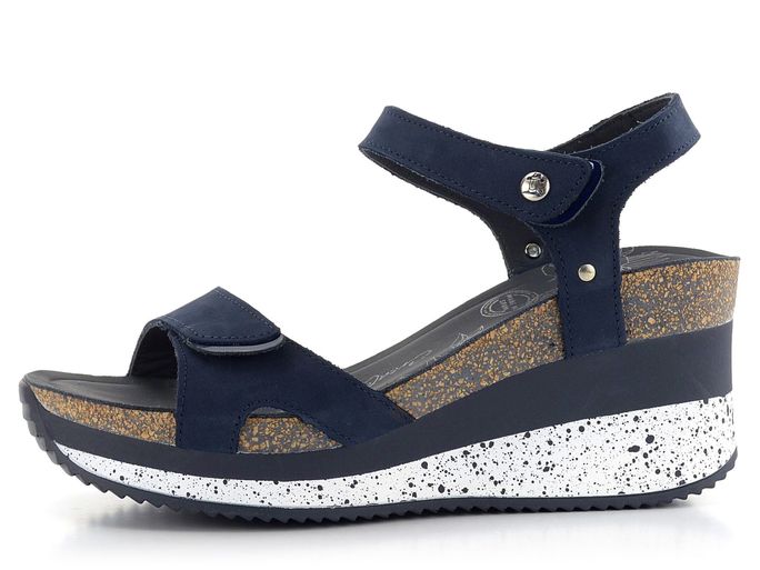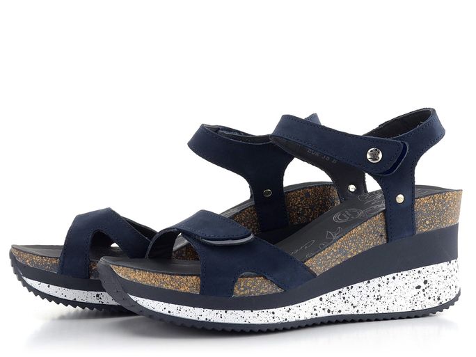 Dámské letní sandály z nubukové kůže v tmavě modré barvě a na vysoké sportovnější platformě s klínem.