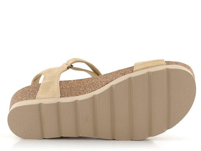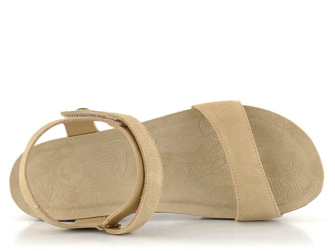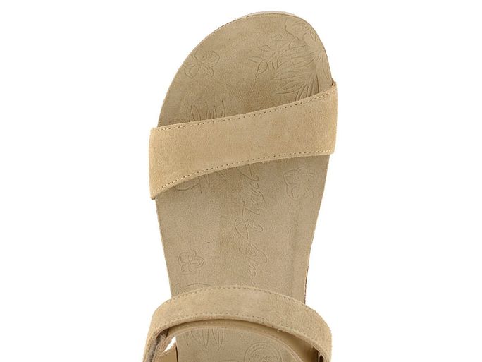 Dámské sandály na platformě s koženými pásky v béžové barvě a zapínáním na suchý zip.
