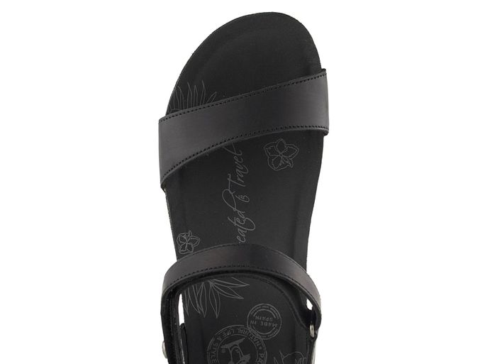 Dámské sandály na platformě s koženými pásky v černé barvě a zapínáním na suchý zip.
