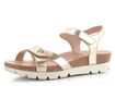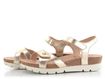 Dámské kožené sandály ve zlaté barvě s pásky na suché zipy a na vyšší sportovnější platformě.