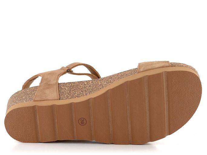 Dámské sandály na platformě s koženými pásky v hnědé barvě a zapínáním na suchý zip.