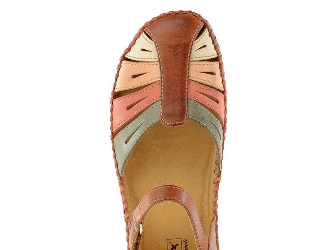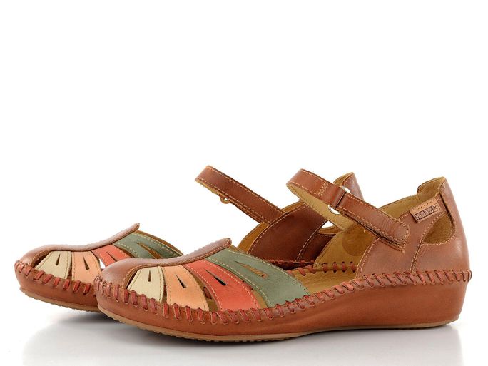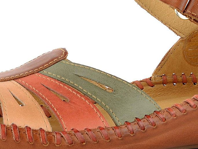 Dámské kožené baleríny laděné do přírodních tlumených barev a s upínacím páskem na suchý zip.