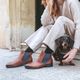 Dámský chelsea kotník v hnědo-modré kombinaci barev s koženou podšívkou a příjemně měkkou stélkou.