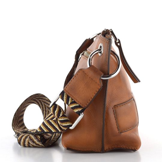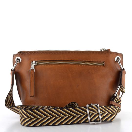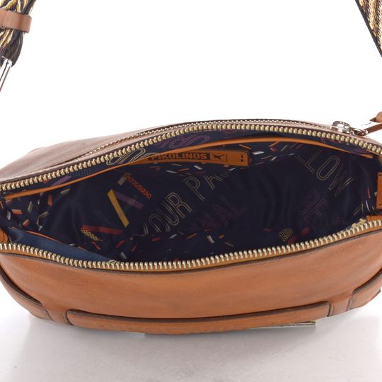 Zažijte dokonalou kombinaci elegance a praktičnosti s luxusní koženou crossbody kabelkou od značky Pikolinos. Tato kabelka vyniká svým obdélníkovým tvarem a optimální velikostí pro každodenní nezbytnosti. Vyrobena z hladké a poddajné kůže v jemně stínované, přírodní hnědé barvě, která připomíná odstín brandy. Kabelka je ozdobena stříbrnými kovovými prvky a zipy, které jí dodávají sofistikovaný vzhled. Na zadní straně najdete praktickou zipovou kapsičku pro rychlý přístup k drobnostem. Vnitřní prostor je vybaven dvěma otevřenými přihrádkami a větší kapsičkou na kovový druk, což zajišťuje perfektní organizaci. Textilní ramenní popruh s vytkávaným vzorem a variabilní délkou (64 - 108 cm) umožňuje pohodlné nošení. Rozměry kabelky jsou: šířka 31 cm, výška 17 cm, hloubka 10 cm.