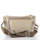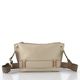 Kožená dámská crossbody kabelka menšího střihu v krémové barvě s nastavitelným popruhem.