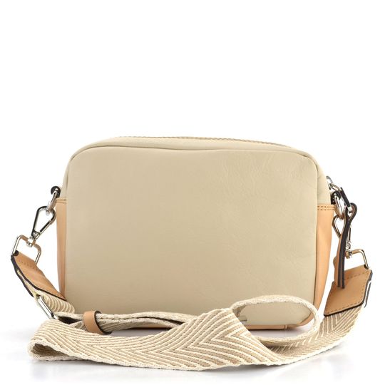 Originální dámská crossbody kabelka malého střihu v krémové barvě a s přední zipovou kapsičkou.