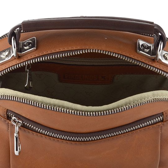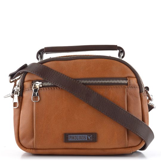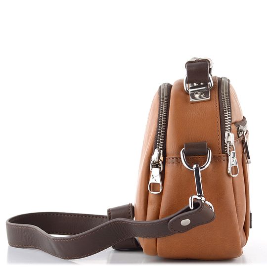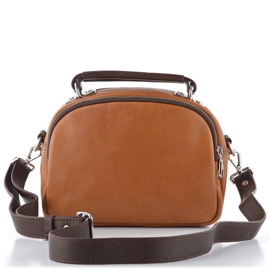 Originální dámská crossbody kabelka v přírodní hnědé barvě a menším střihu, s odepínatelným popruhem a madlem do ruky.