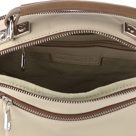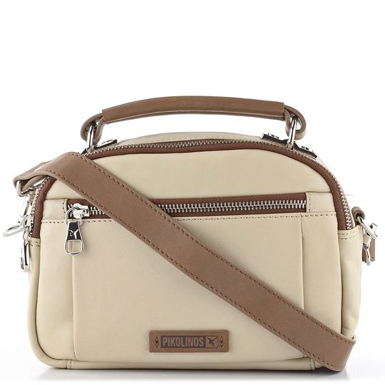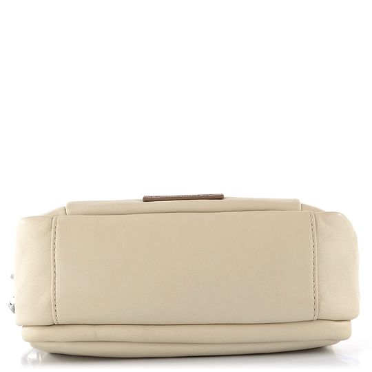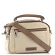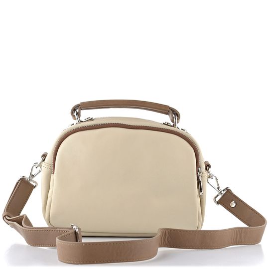 Originální dámská crossbody kabelka v krémové barvě a menším střihu, s odepínatelným popruhem a madlem do ruky.