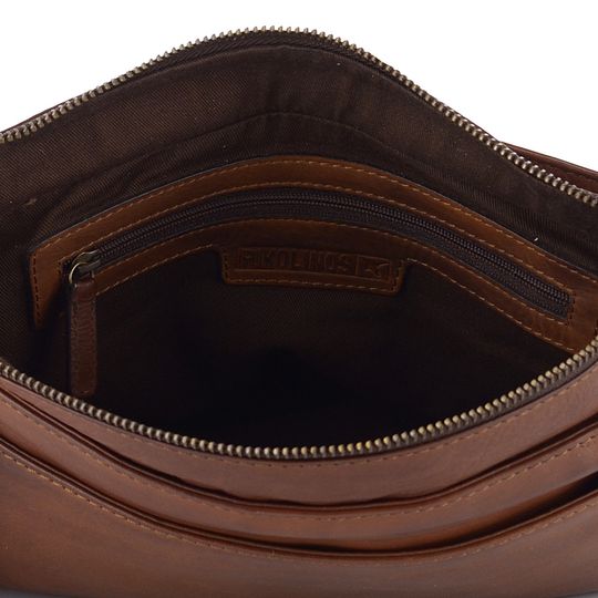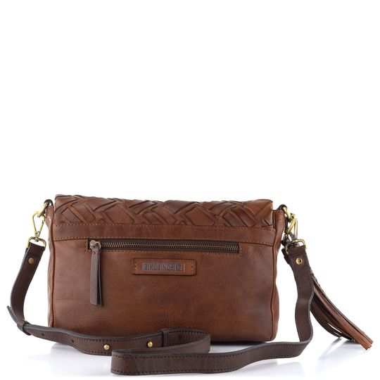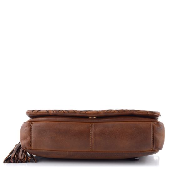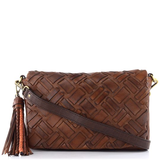 Originální dámská kožená kabelka v menším střihu s klopou zdobenou proplétanými pásky.