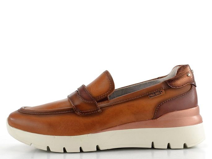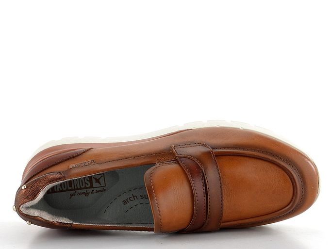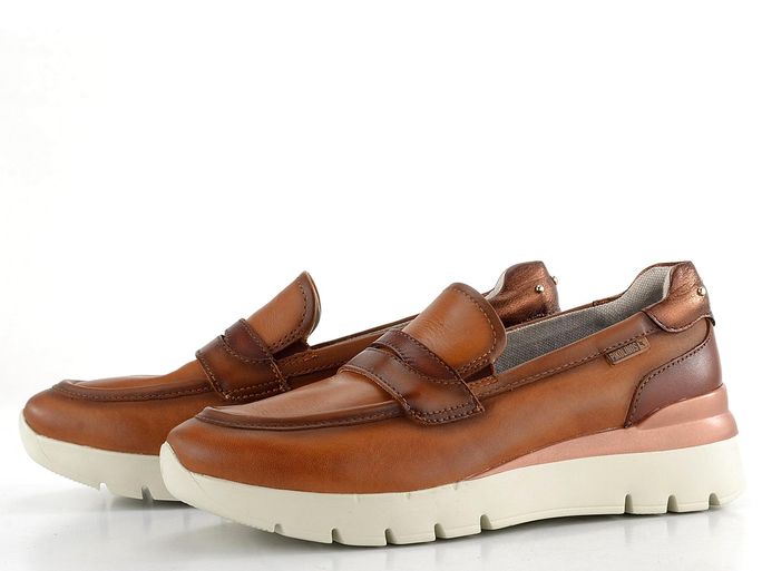Pro ženy, které hledají stylovou a komfortní obuv na podzim a zimu, jsou dámské mokasíny značky Pikolinos ideální volbou. Tyto mokasíny vynikají svým sportovním šmrncem a komfortním střihem s kulatou špičkou. Svršek z poddajné hladké kůže v přírodní hnědé barvě se stínováním, zdobený koženým páskem a cvočky, dodává botám elegantní vzhled. Všité pruženky po obou stranách nártu zajišťují snadné obutí. Mokasíny mají měkkou a vyjímatelnou stélku z paměťové pěny s podporou podélné klenby a zesílenou patou. Zvýšená latexová podešev s absorbérem rázů a ochranou špičky zaručuje pohodlí při každém kroku. Tyto boty jsou nejen stylové, ale také praktické a šetrné k vašim nohám.