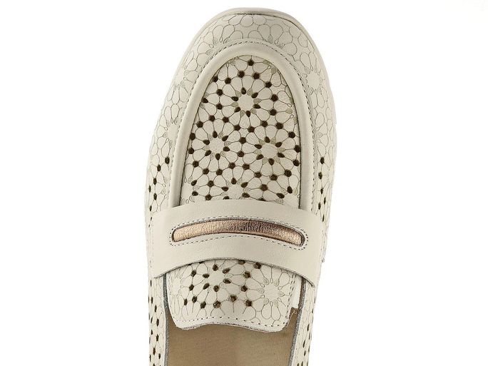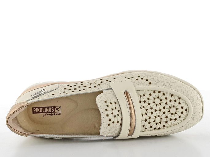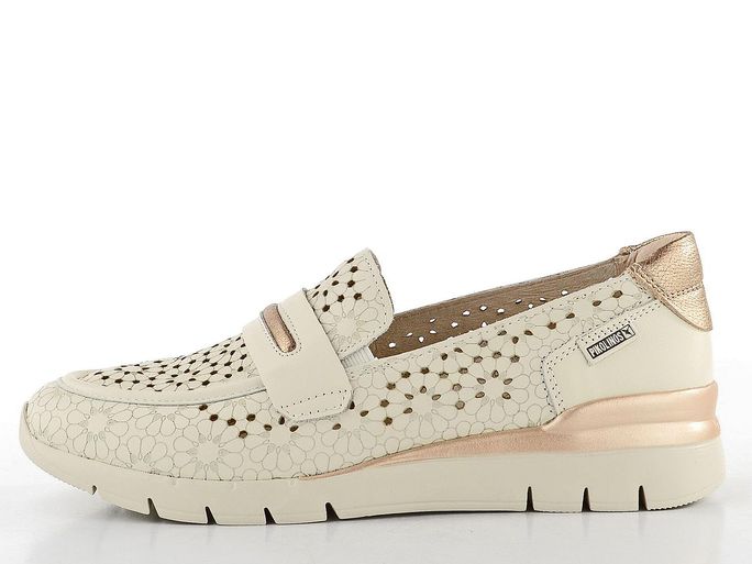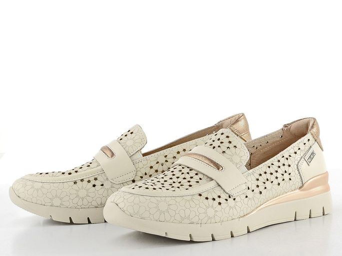 Zažijte dokonalou kombinaci elegance a pohodlí s dámskými mokasíny od značky Pikolinos. Tyto boty jsou navrženy pro teplé jarní a letní dny, kdy potřebujete vypadat stylově a cítit se komfortně. Svršek z hladké kůže v jemném béžovém odstínu s bronzovými metalickými akcenty přináší sofistikovaný vzhled. Ozdobný propalovaný vzor nejenže dodává estetickou hodnotu, ale také zajišťuje příjemné odvětrávání. Mokasíny jsou vybaveny vyjímatelnou vložkou z paměťové pěny, která poskytuje podporu a pohodlí při každém kroku. Díky pruženkám na nártu je obutí hračka a měkká podešev s klínkem zajistí lehkost pohybu. Tyto mokasíny jsou ideální volbou pro ženy, které hledají kvalitu a styl v jednom.