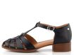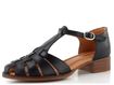Dámské kožené sandály v černé barvě, s plnou patou a nízkým širokým podpatkem.