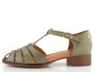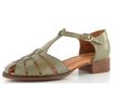 Dámské kožené sandály v zelené barvě, s plnou patou a nízkým širokým podpatkem.