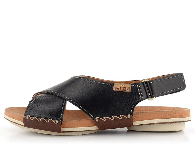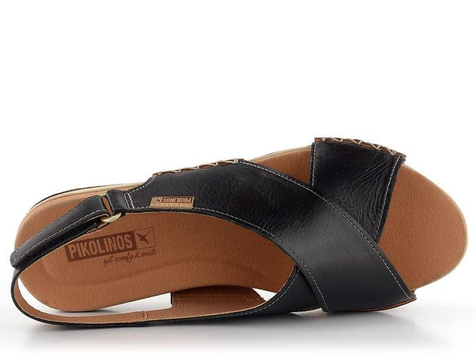 Dámské kožené sandály s kříženými pásky a zapínáním na suchý zip.