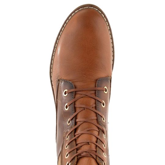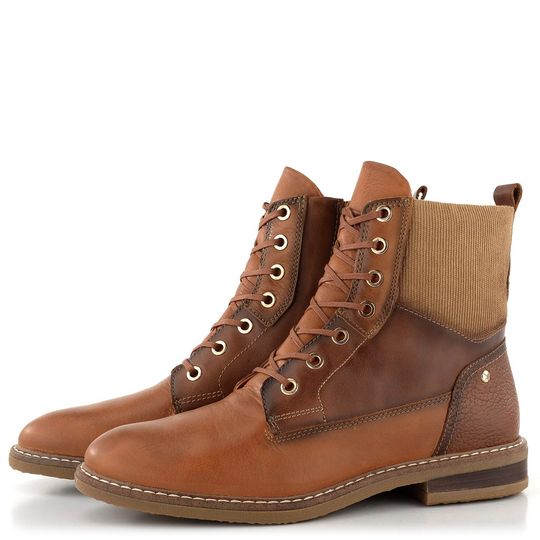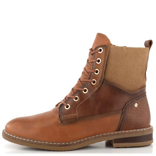 Kožený dámský kotník v klasickém střihu na šněrování, s postranním zipem a měkkou kotníkovou bandáží.