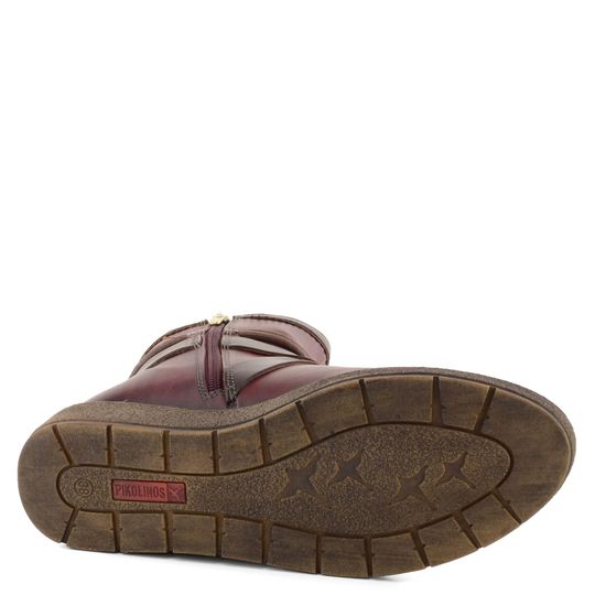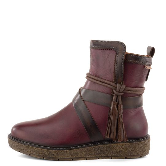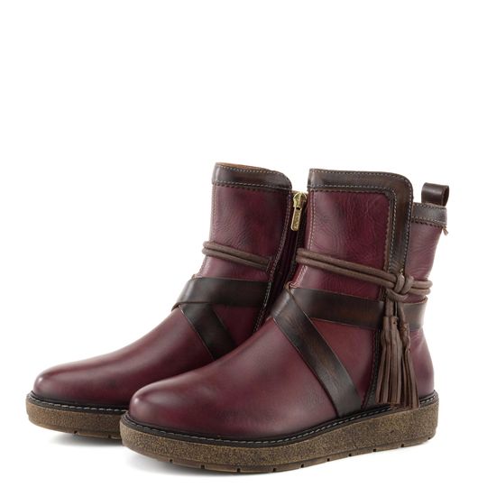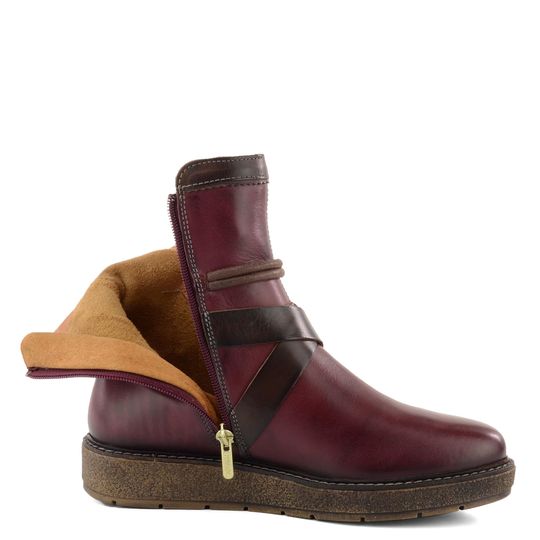 Dámský vyšší nezateplený kotník v bordó/hnědé barvě na vyšší podešvi.